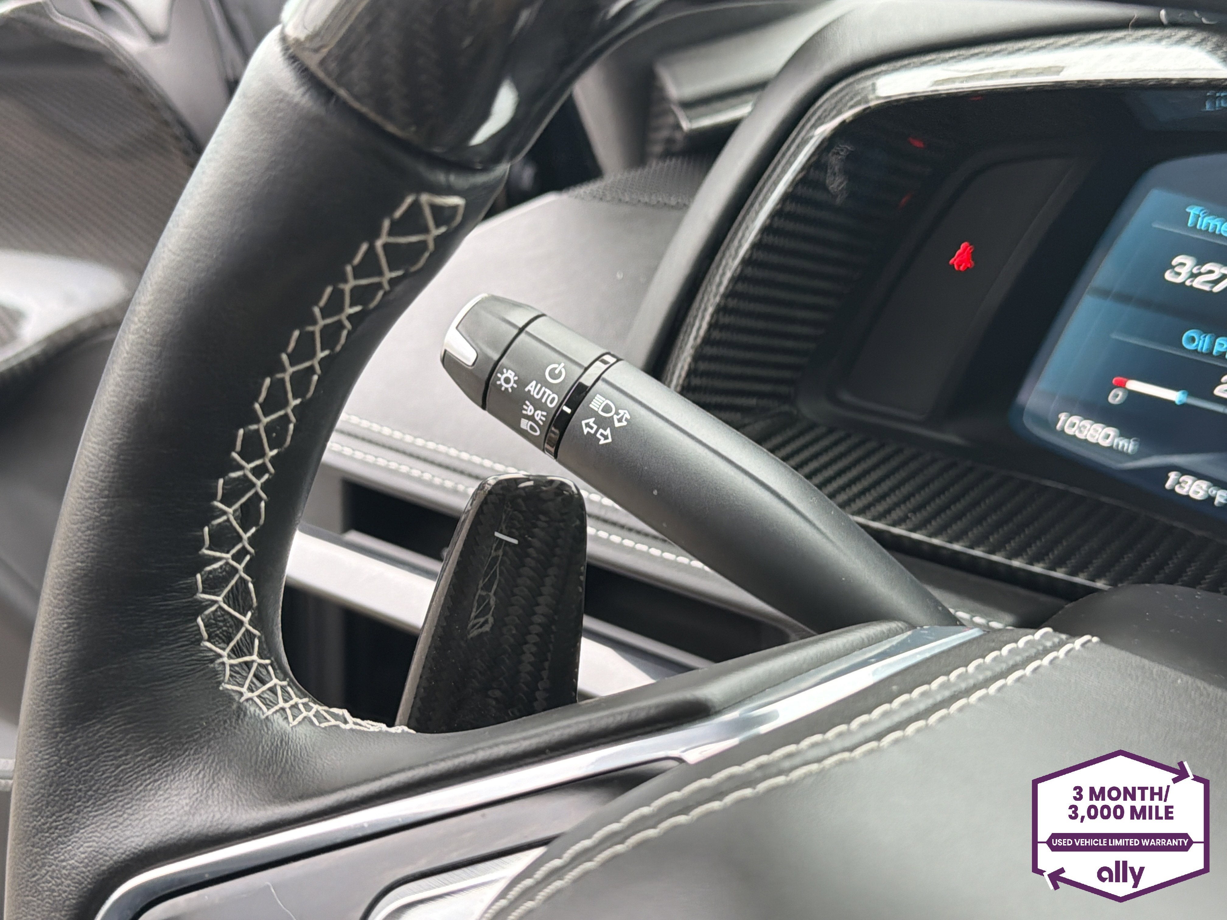 Carbon-fiber steering wheel accents and paddle shifters